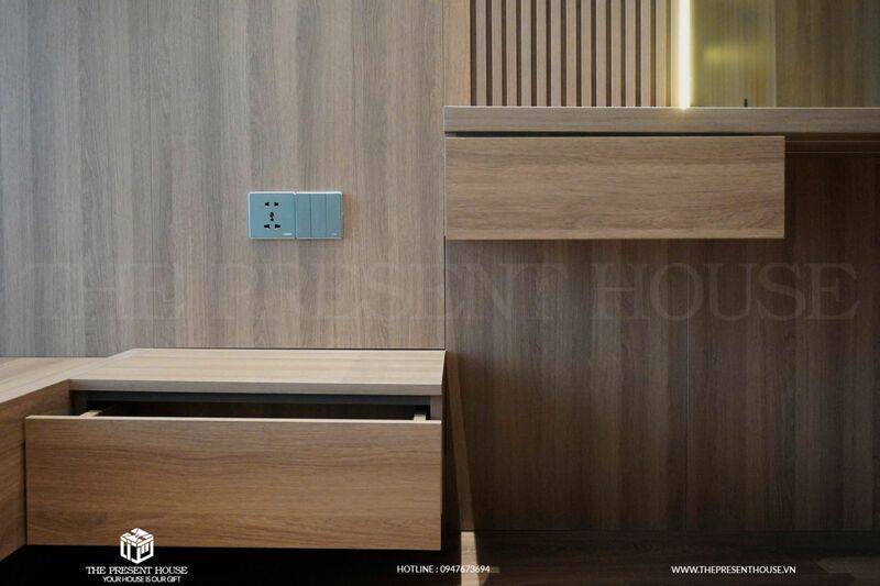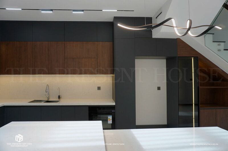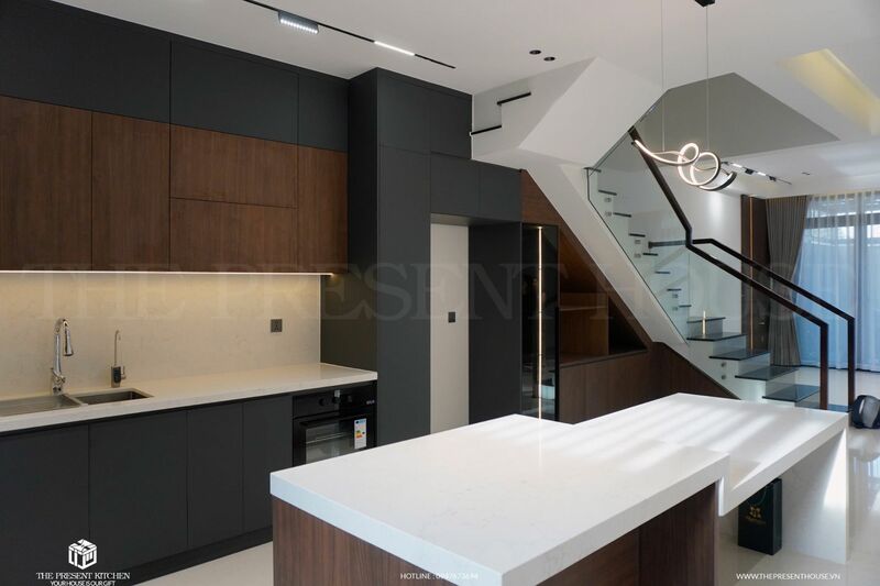Hệ thống lưu trữ tối ưu, cảm biến ánh sáng và công nghệ điều khiển từ xa giúp mọi thao tác trở nên dễ dàng hơn bao giờ hết. Kết hợp cùng chất liệu cao cấp như đá thạch anh, gỗ An Cường vân gỗ óc chó phối cùng toent màu xám chì thời thượng tạo nên không gian đầy tinh tế và đẳng cấp.