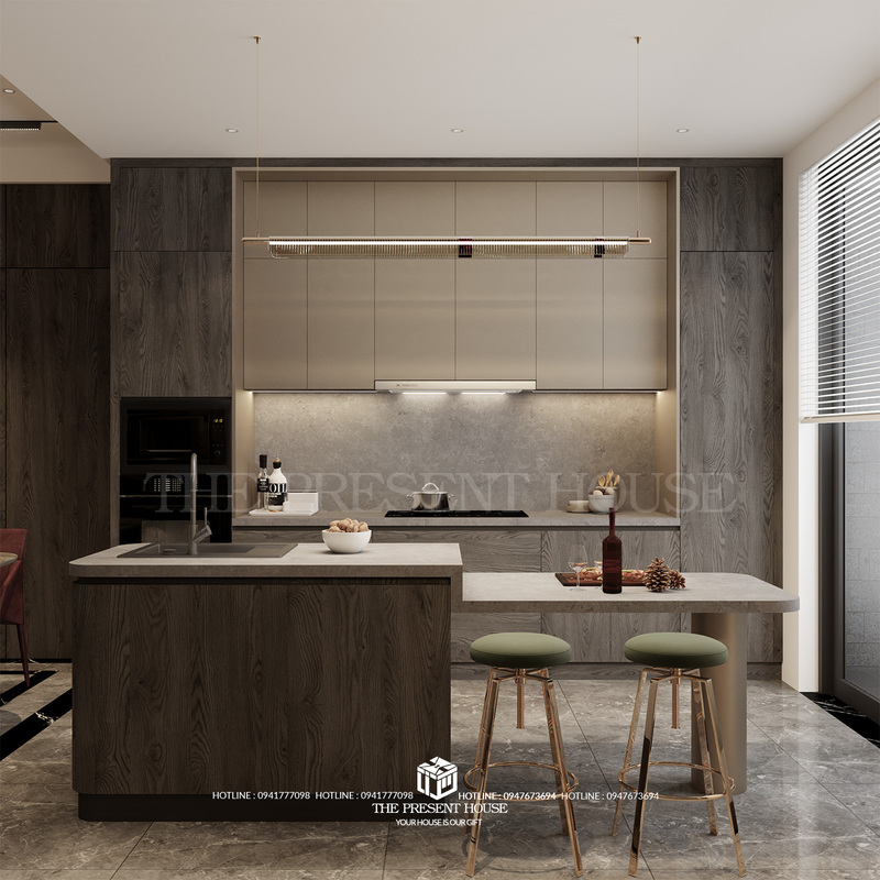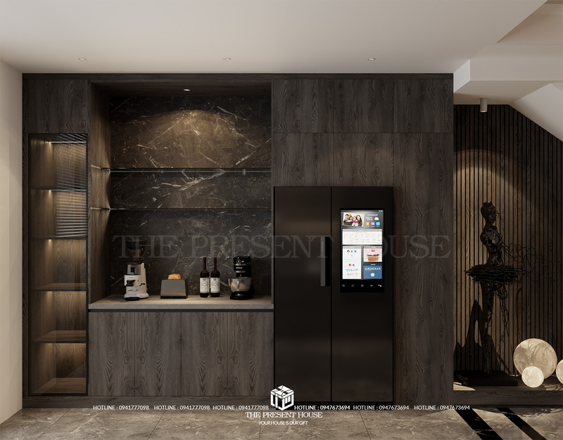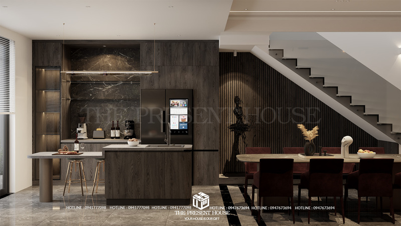 Bộ ảnh tiếp theo trong chuỗi công trình lần này là không gian phòng khách – bếp – bàn ăn đậm chất “nội thất tối màu cao cấp”, dành cho những chủ nhân yêu thích chiều sâu, sự tinh tế và cá tính rõ nét trong từng góc nhỏ.