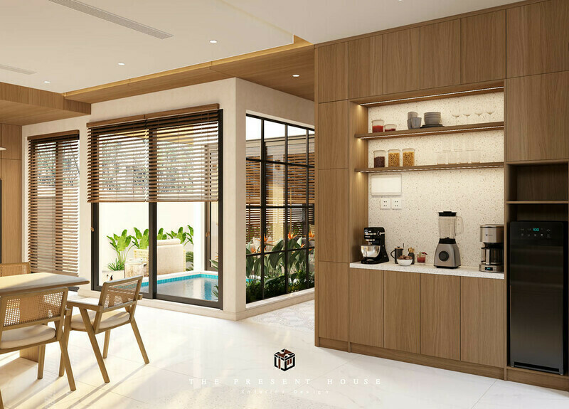 Một không gian sống tiện nghi, hiện đại kết hợp nghỉ dưởng tại gia của một gia đình nhỏ. Một thiết kế mộc mạc, giản dị thiên về cây xanh và ánh sáng, hoà mình vào thiên nhiên.
