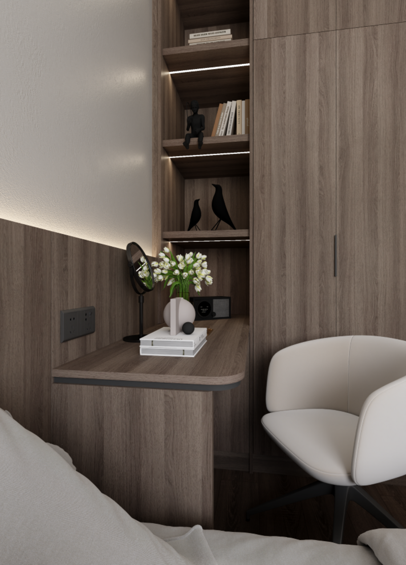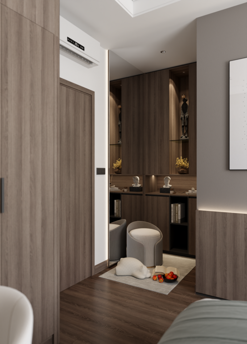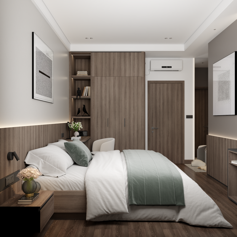 Đường nét gọn gàng: Không gian được thiết kế với các đường nét sạch sẽ, đơn giản và không cầu kỳ. Mọi chi tiết đều hướng đến tính công năng và sự thoải mái cho người sử dụng.