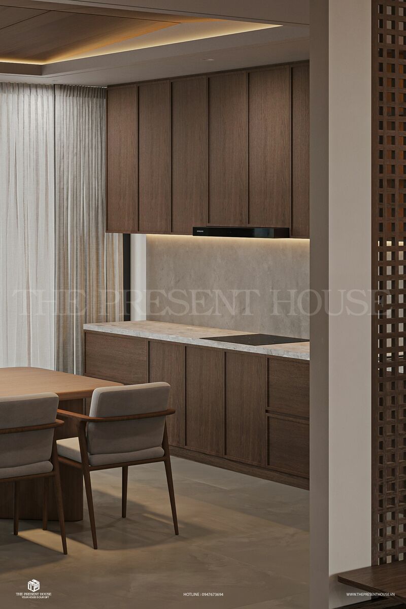 Với ngôn ngữ thiết kế tối giản, tinh tế và đầy chiều sâu, công trình này là sự kết hợp hoàn hảo giữa triết lý Zen và chất liệu gỗ ấm áp. Mỗi khu vực, từ phòng khách, phòng ăn đến phòng ngủ, đều được bố trí hài hòa, chú trọng cảm giác thư giãn, ánh sáng tự nhiên và dòng chảy năng lượng xuyên suốt toàn bộ không gian. Một tổ ấm không chỉ để ở, mà để sống chậm, cảm nhận và tái tạo năng lượng mỗi ngày.